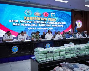 JAKARTA,POSBERNAS – Sebagai bagian dari upaya nasional dalam pemberantasan peredaran gelap narkoba, Badan Narkotika Nasional (BNN) bersama Kepolisian Negara Republik Indonesia (Polri), Tentara Nasional Indonesia (TNI), dan Pemerintah Daerah menggelar Operasi Bersama Pemberantasan dan Pemulihan Kampung Narkoba secara serentak pada 5 s.d. 7 November 2025, di berbagai wilayah Indonesia.