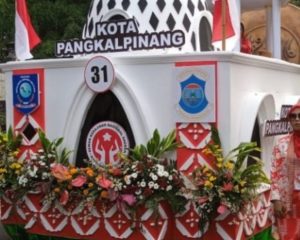 Mobil hias dari Dekranasda Kota Pangkalpinang ini pun diiringi oleh pengiring yang menggunakan baju batik motif nol kilometre yang merupakan batik khas Kota Pangkalpinang.