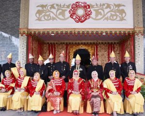 Bengkulu, – Mengenakan baju Bengkulu, Kepala Bakamla RI Laksdya TNI Dr. Irvansyah, S.H., M.Tr.Opsla.,didampingi Ketua DWP Bakamla RI Ibu Yuanita Irvansyah menghadiri Upacara peringatan Hari Ulang Tahun (HUT) Provinsi Bengkulu ke-55 Tahun 2023 yang digelar di Lapangan Upacara Kantor Gebernur Bengkulu, Sabtu (18/11/2023).