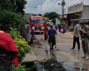 Terlihat mobil truk sampah maupun mobil pemadam kebakaran diturunkan, begitu pula karyawan PT.TIMAH ada yang membawa sapu lidi, sapu ijuk, cangkul skop dan lain lainnya