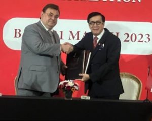 Denpasar – Menteri Hukum dan Hak Asasi Manusia (Menkumham), Yasonna H. Laoly, bersama Menteri Hukum Federasi Rusia, Konstantin Chuichenko menandatangani perjanjian ekstradisi antara Republik Indonesia (RI) dengan Federasi Rusia di Bali, Jumat (31/03/2023).