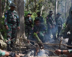 Banyuwangi, – Prajurit Korps Marinir TNI AL berbagi ilmu dengan Singapore Army dan Japan Ground Self-Defense Force (JGSDF) tentang bagaimana cara bertahan hidup di hutan (Jungle Survival) dalam Latihan Gabungan Bersama (Latgabma) Super Garuda Shield 2023 di hutan Selogiri, Kalipuro, Banyuwangi, Jawa Timur, Sabtu (02/09/2023).