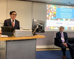 Tampil sebagai Pembicara Utama, Yasonna menjelaskan bahwa isu martabat manusia dapat dilihat dari berbagai konteks yang berbeda karena keragaman budaya, namun tidak menghapuskan persamaan bahwa setiap manusia berhak mendapatkan perlakuan yang terhormat tanpa dibeda-bedakan.
