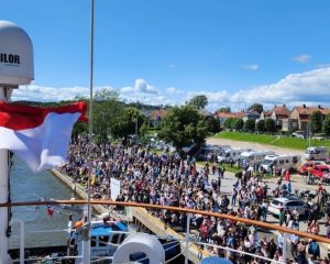 Norwegia,- Ribuan penjunjung event kapal layar bergengsi internasional Tall Ship Race 2023 memadati Dermaga Toldbodbrygga, Fredrikstad, Norwegia pada Selasa (18/07) untuk memberikan dukungan dan melepas keberangkatan KRI Bima Suci menuju etape berikutnya ke Skotlandia.