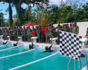 Sorong – Dalam rangka menyambut Hari Ulang Tahun Koarmada III dan Pasmar 3 yang ke-5 tahun 2023 yang jatuh pada tanggal 11 Mei 2023 nanti, Prajurit Koarmada III dan Pasmar 3 mengikuti berbagai macam lomba dan pertandingan salah satunya adalah pertandingan voli dan Renang Militer. Rabu (03/05/23).