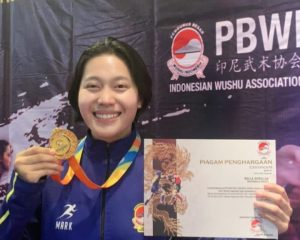 Jakarta – Prestasi membanggakan kembali ditorehkan oleh Prajurit TNI Angkatan Laut (TNI AL) yaitu Serda Jas/W Bella Aprillia seorang prajurit Korps Wanita Angkatan Laut (Kowal) yang meraih emas pada Kejuaraan Wushu DKI Jakarta Sanda Wang yang dilaksanakan di Wushu Rajawali Sakti Baywalk Mall, Jakarta, Minggu (30/4).