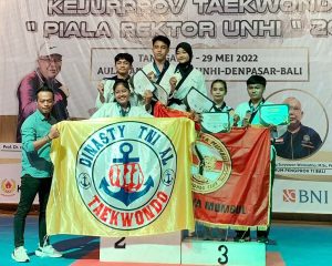 Taekwondo Dinasty TNI AL Denpasar yang dibawah binaan Potensi Maritim (Potmar) Pangkalan TNI AL (Lanal) Denpasar ikut berkiprah dalam kejuaraan tersebut dengan menurunkan 66 atlet terbaiknya dan berhasil menorehkan prestasi Juara Umum I dengan perolehan medali 22 emas, 21 perak dan 19 perunggu, di katagori Tingkat Pemula dan menempatkan taekwondoin Dinasty TNI AL atas nama AL Zahira Sekar Kinanthi sebagai atelit terbaik dalam Kejurprov Taekwondo Piala Rektor UNHI Bali 2022, di Aula Taman Asoka UNHI, Denpasar, pada Jumat-Minggu (27-29/5).