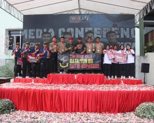 JAKARTA – Komandan Jenderal TNI Komando Pasukan Khusus (Danjen Kopassus) Mayjen TNI Iwan Setiawan menutup Kejuaraan Nasional Kopassus Skydiving yang digelar untuk pertama kalinya, di Pusdiklat Passus, Batujajar, Bandung, Minggu (22/5/2022).