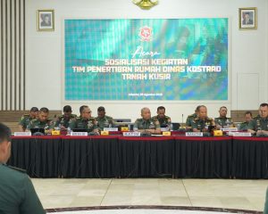 Jakarta, posbernas, – Komando Cadangan Strategis Angkatan Darat (Kostrad) melaksanakan kegiatan Sosialisasi dan Rapat Koordinasi terkait penertiban rumah dinas di Komplek Kostrad Tanah Kusir, Jakarta Selatan. Acara ini digelar di Aula Mandala Lantai 2, Markas Kostrad Jakarta Pusat, mulai pukul 09.00 WIB, dipimpin langsung oleh Aslog Kaskostrad, Brigjen TNI Esy Suharto selaku Ketua Tim Penertiban Rumah Dinas Kostrad. Jakarta,Selasa (26/08)