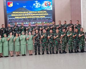 Dalam sambutannya, Danrindam XIII/Mdk Brigjen TNI Wempi Ramandei menegaskan bahwa pembinaan mental merupakan fondasi utama dalam membentuk prajurit yang tangguh dan keluarga yang harmonis. Ia mengingatkan pentingnya menanamkan nilai-nilai keimanan dan ketakwaan kepada Tuhan Yang Maha Esa sebagai pedoman hidup prajurit. “Prajurit yang kuat bukan hanya mereka yang tangguh secara fisik, tetapi juga yang memiliki mental baja, disiplin tinggi, serta mampu menjaga kehormatan diri dan satuannya,” tegas Danrindam.