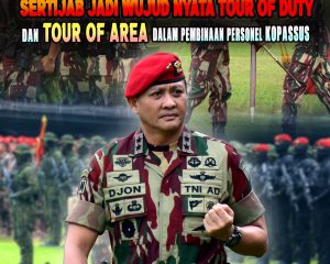 Jakarta, POSBERNAS, – Komando Pasukan Khusus (Kopassus) menggelar upacara dan acara ramah tamah dalam serah terima jabatan (sertijab) sejumlah pejabat strategis, antara lain Komandan Grup 1, Grup 2, dan Satuan 81 Kopassus, serta Asisten Operasi (Asops), Asisten Personel (Aspers), Asisten Logistik (Aslog), dan Asisten Teritorial (Aster) Kopassus. Selain itu, dilakukan juga penyerahan jabatan Dandenma Kopassus. Upacara dipimpin langsung oleh Komandan Jenderal Kopassus, Mayor Jenderal TNI Djon Afriandi, S.I.P., MS.DA., di Lapangan Ahmad Kirang dan Gedung Halilintar Satuan 81 Kopassus, serta dihadiri oleh para Pejabat Utama Kopassus dan Ketua Persit Kartika Chandra Kirana Cabang BS Kopassus beserta jajaran. Senin (21/04)