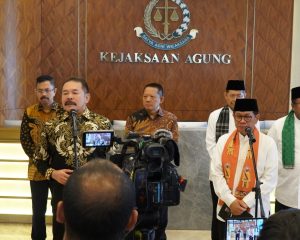 JAKARTA, POSBERNAS, – Jaksa Agung ST Burhanuddin menerima kunjungan Gubernur DK Jakarta Pramono Anung dan Wakil Gubernur DK Jakarta Rano Karno di Gedung Utama Kejaksaan Agung, Jakarta, dalam rangka silaturahmi di awal masa jabatan kepemimpian. Jumat (07/3)