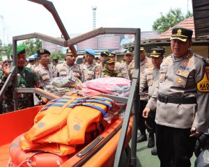 Adapun sarana dan prasarana yang dicek antara lain meliputi kendaraan roda empat (KR 4), perahu karet, perlengkapan kesehatan, serta peralatan identifikasi dan SAR dari berbagai satuan fungsi seperti Satsamapta, Satlantas, Satbinmas, Satreskrim, dan Basarnas.