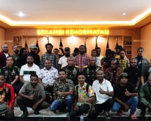 Manokwari – Pangdam XVIII/Kasuari, Mayjen TNI Gabriel Lema, S.Sos., yang didampingi Kasdam XVIII/Kasuari, Brigjen TNI Yusuf Ragainaga menerima langsung audiensi perwakilan Mahasiswa dan Alumni Unipa, di Ruang Utama dan Serambi Kehormatan, Makodam, Trikora, Arfai 1, Manokwari, Papua Barat, Jumat (19/5/2023).