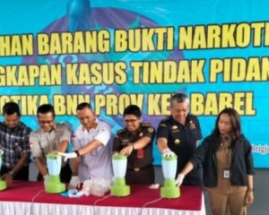Pangkalpinang – Sebanyak 425 gram barang bukti (BB) Narkotika jenis sabu-sabu dengan nilai Rp450 juta dimusnakan dengan cara diblender sampai hancur hingga dibuang kedalam septic tank, atas upaya dari Tim BNNP Babel dan Tim lainnya secara tidak lamgsung berhasil menyelamtakan 2.555 jiwa anak bangsa. Selasa (16/05/2023).